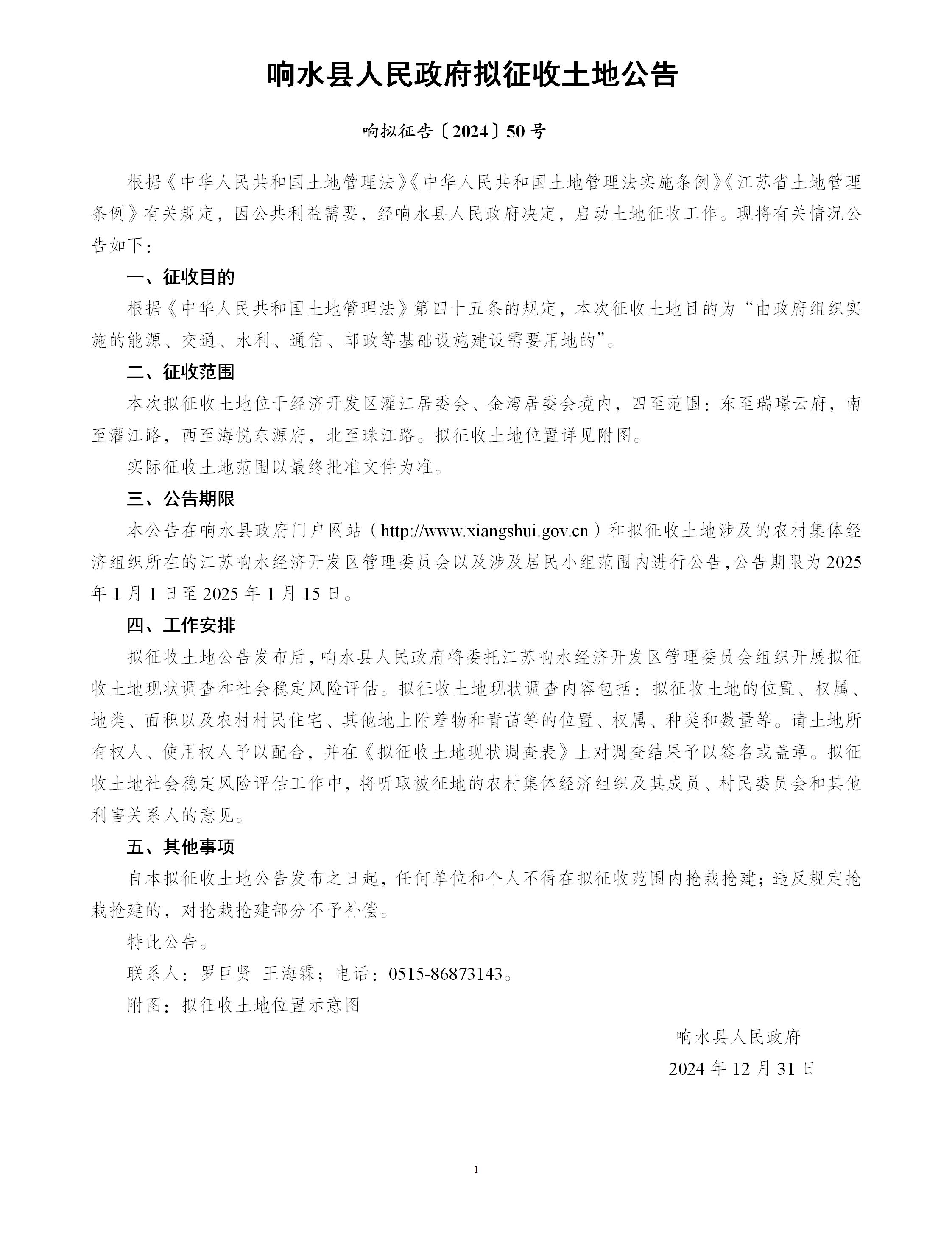 响水县人民政府拟征收土地公告