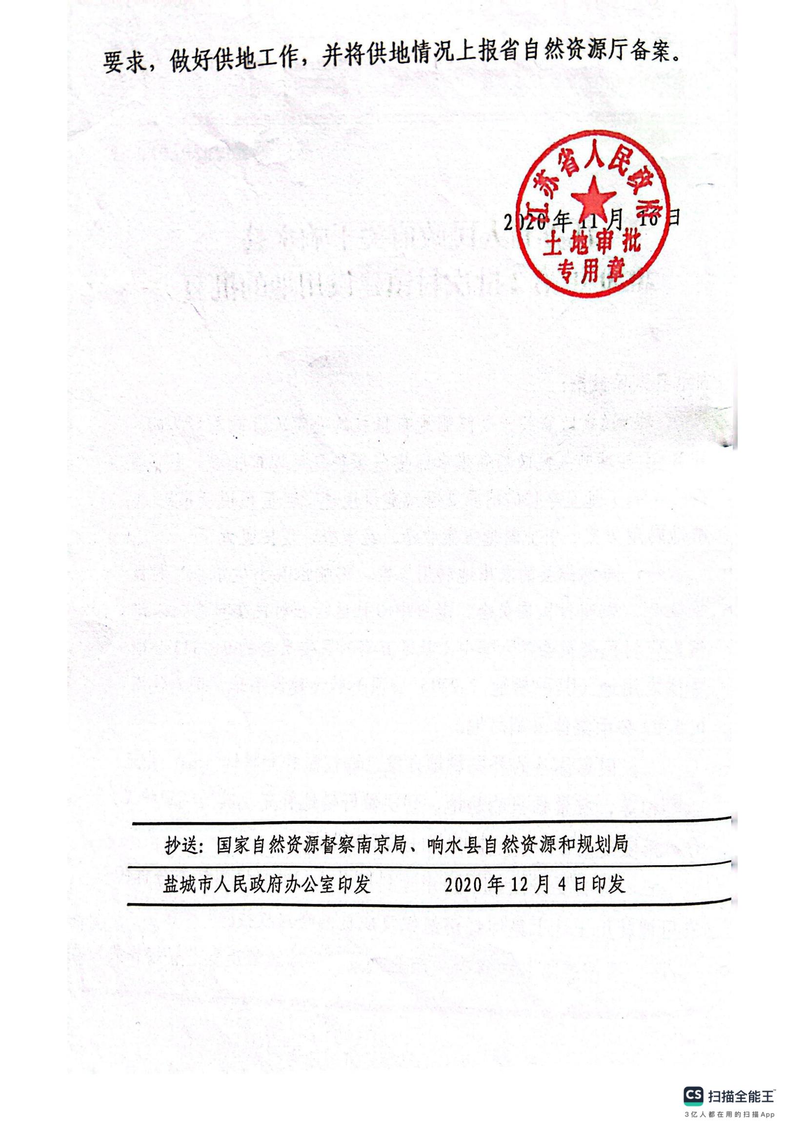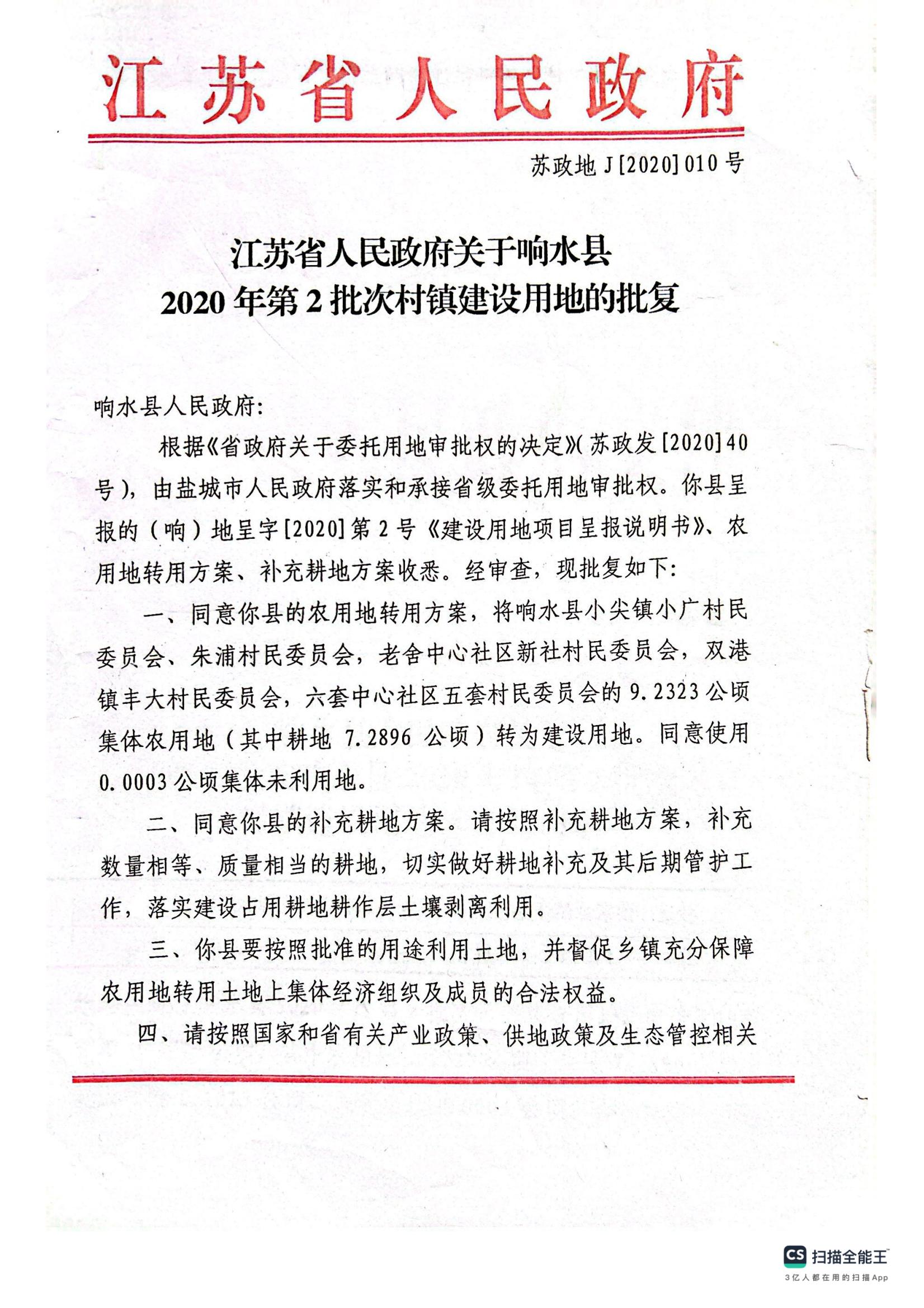 2020.11.16江苏省人民政府响水县2020年度第2批次村镇建设用地的批复