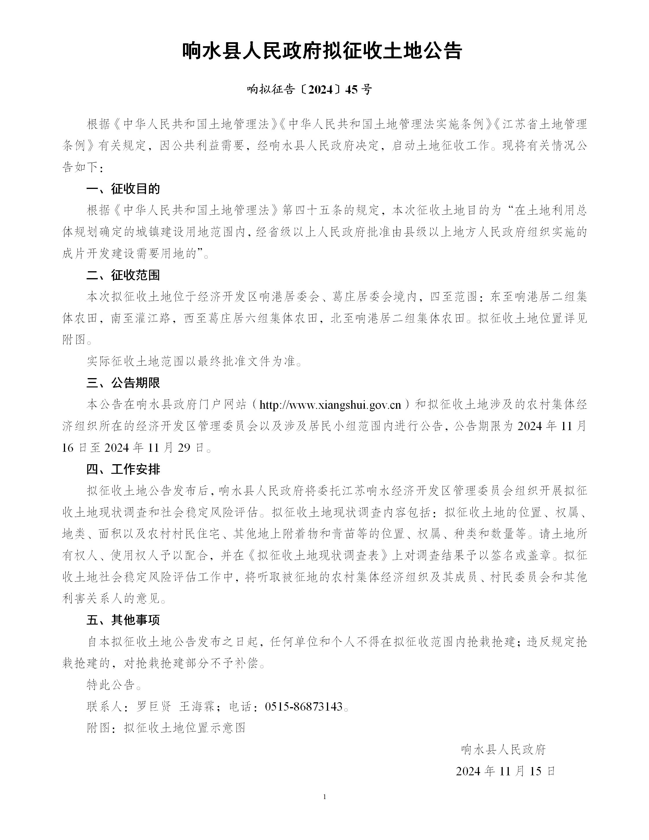 响水县人民政府拟征收土地公告