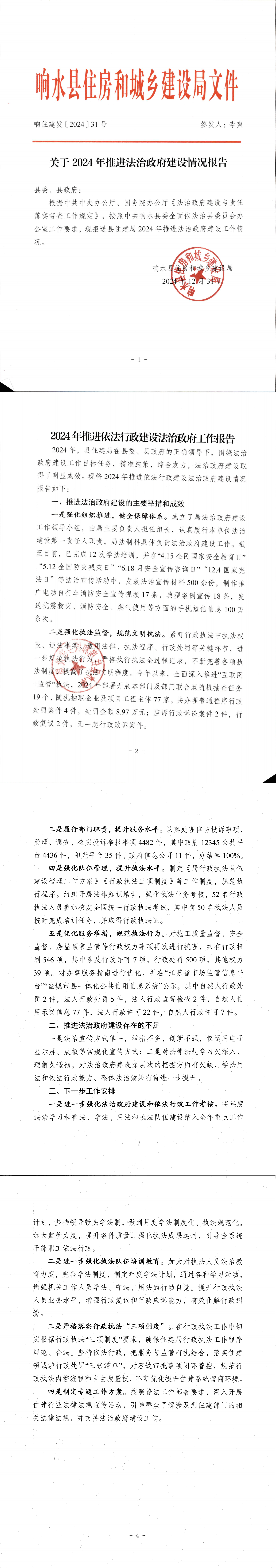 响水县住建局关于2024年推进法治政府建设情况报告