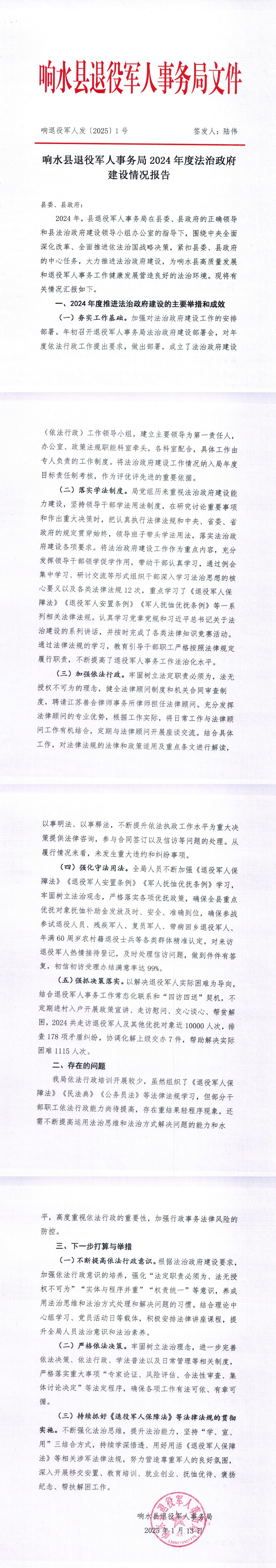 响水县退役军人事务局2024年度法治政府建设情况报告