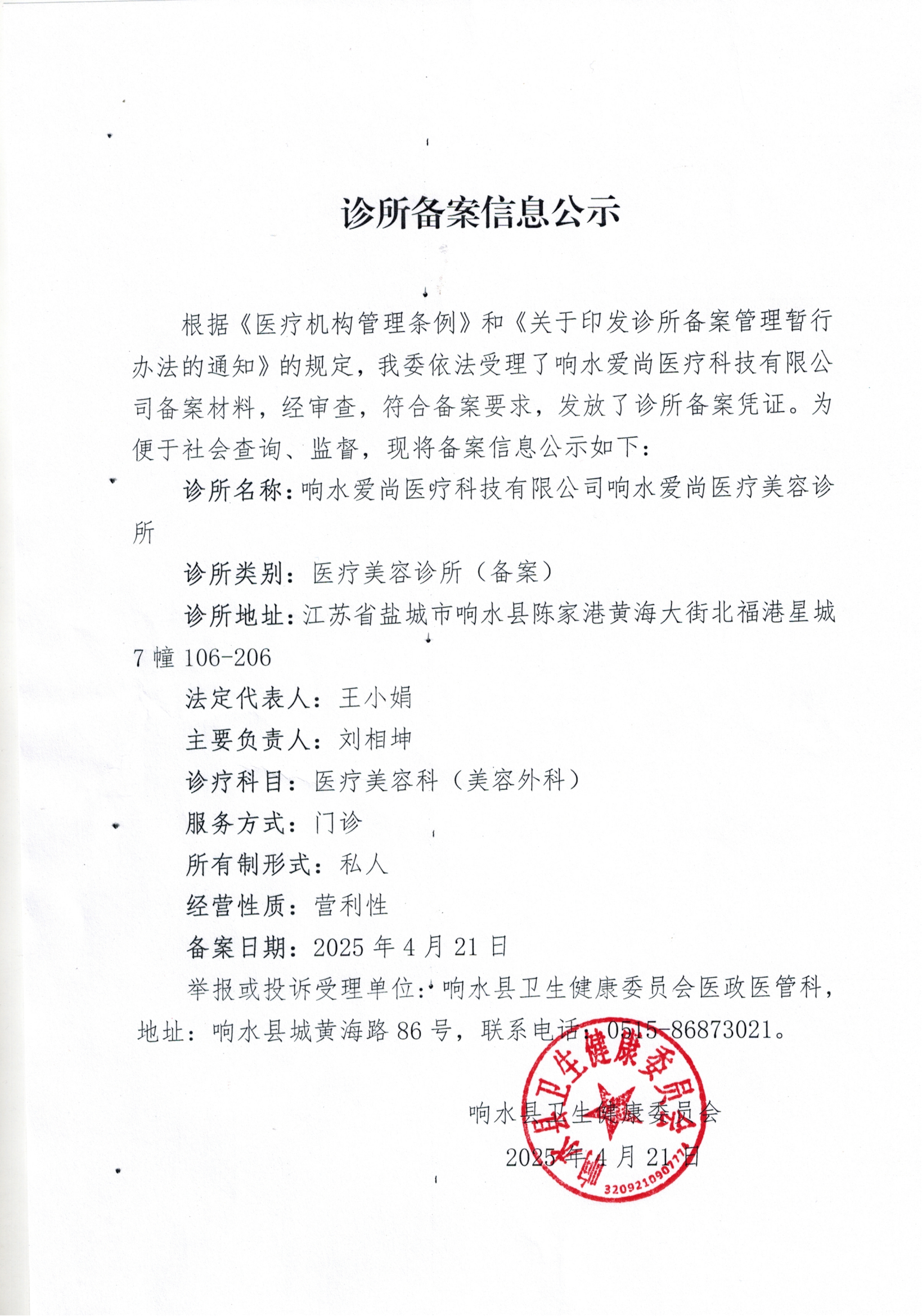 诊所备案信息公示