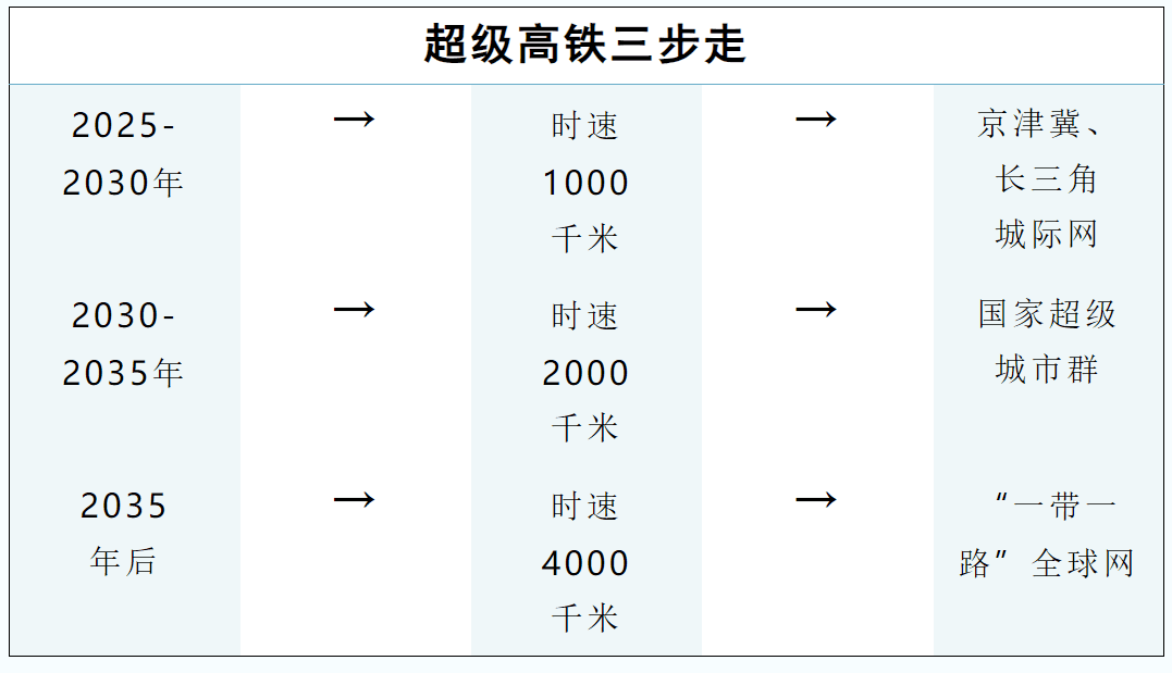 如今,中国在《交通强国建设纲要》框架下布局京港澳、沪(深)广等高速磁悬浮通道,并推进高温超导磁悬浮与真空管道技术融合。甚至早在2017年,中国航天科工集团就已启动目标时速1000-4000千米的“高速飞车”研发项目,并已进行多次试验。超音速高铁指日可待!