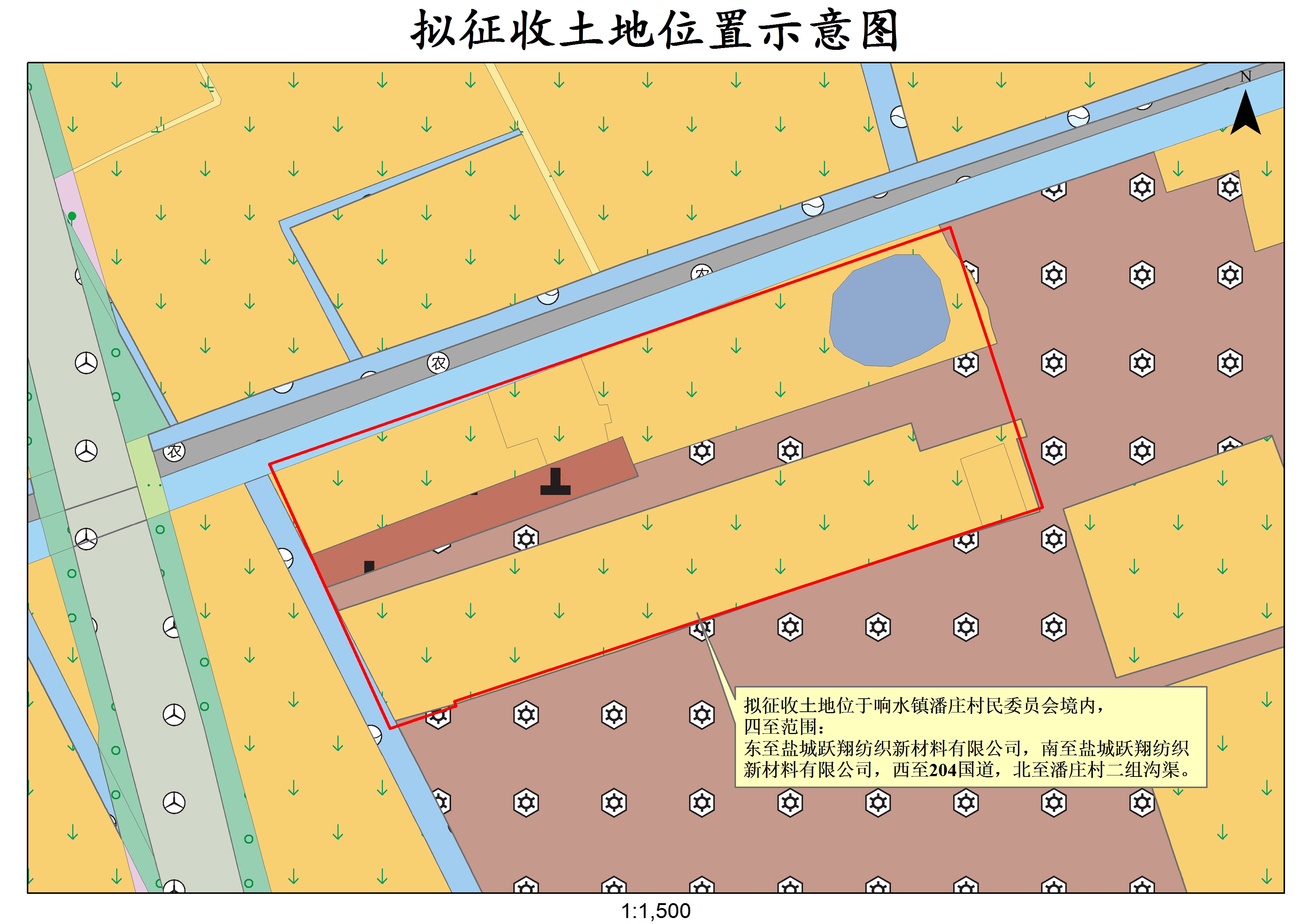 根据《中华人民共和国土地管理法》《中华人民共和国土地管理法实施条例》《江苏省土地管理条例》有关规定,因公共利益需要,经响水县人民政府决定,启动土地征收工作。现将有关情况公告如下: 一、征收目的 根据《中华人民共和国土地管理法》第四十五条的规定,本次征收土地目的为“土地利用总体规划确定的城镇建设用地范围内,经省级以上人民政府批准由县级以上地方人民政府组织实施的成片开发建设需要用地的”。 二、征收范围 本次拟征收土地位于响水镇潘庄村民委员会境内,四至范围:东至盐城跃翔纺织新材料有限公司,南至盐城跃翔纺织新材料有限公司,西至204国道,北至潘庄村二组沟渠。拟征收土地位置详见附图。 实际征收土地范围以最终批准文件为准。 三、公告期限 本公告在响水县政府门户网站(http://www.xiangshui.gov.cn)和拟征收土地涉及的农村集体经济组织所在的响水镇人民政府以及涉及村居范围内进行公告,公告期限为2026年3月21日至2026年4月3日。 四、工作安排 拟征收土地公告发布后,响水县人民政府将委托响水镇人民政府组织开展拟征收土地现状调查和社会稳定风险评估。拟征收土地现状调查内容包括:拟征收土地的位置、权属、地类、面积以及农村村民住宅、其他地上附着物和青苗等的位置、权属、种类和数量等。请土地所有权人、使用权人予以配合,并在《拟征收土地现状调查表》上对调查结果予以签名或盖章。拟征收土地社会稳定风险评估工作中,将听取被征地的农村集体经济组织及其成员、村民委员会和其他利害关系人的意见。 五、其他事项 自本拟征收土地公告发布之日起,任何单位和个人不得在拟征收范围内抢栽抢建;违反规定抢栽抢建的,对抢栽抢建部分不予补偿。 特此公告。 联系人:王欣然王海霖;电话:0515-86873143。 响水县人民政府 2026年3月20日 |